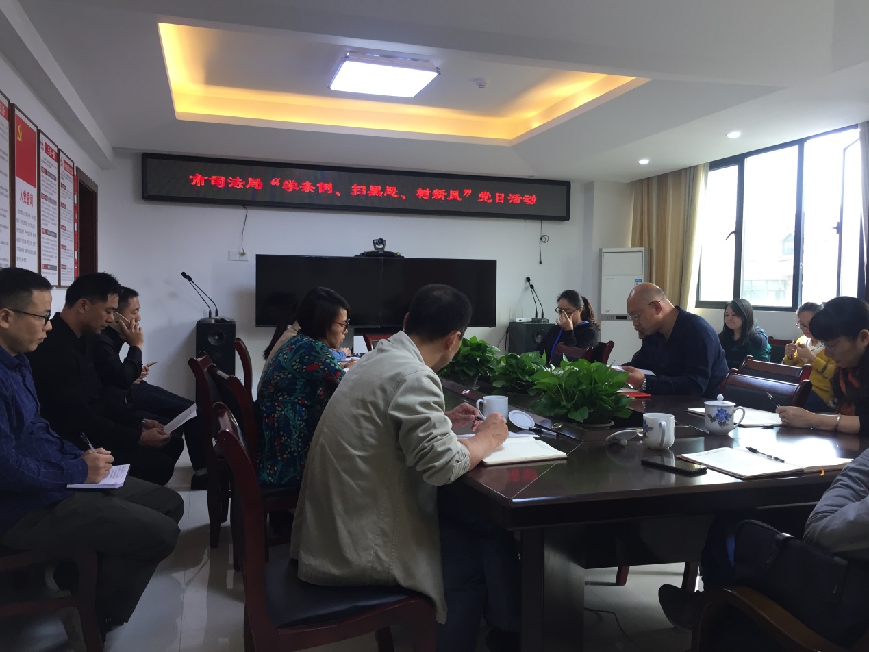 首先由机关支部书记何军传达市10月份党建工作安排并部署司法局总支及下属支部党建工作,明确司法系统10月份党建主要任务如下:一是做好迎接三季度党建督查工作;二是各支部按要求开展好主题党日活动;三是抓好"扫黑除恶"宣传工作;四是做好党员发展工作;五是推进党支部建设"五化"建设;六是开展好党员教育。