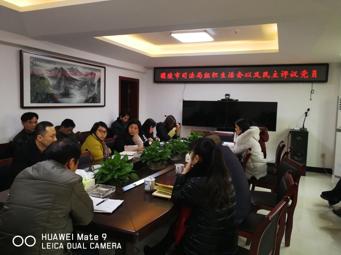 2018年 1月22日,醴陵市司法局机关支部召开2017年度专题组织生活会。会议以学习贯彻党的十九大精神为主题,围绕"两学一做"学习教育的要求,重点对照《准则》和《条例》,结合思想和工作实际,每名党员进行自我检查
