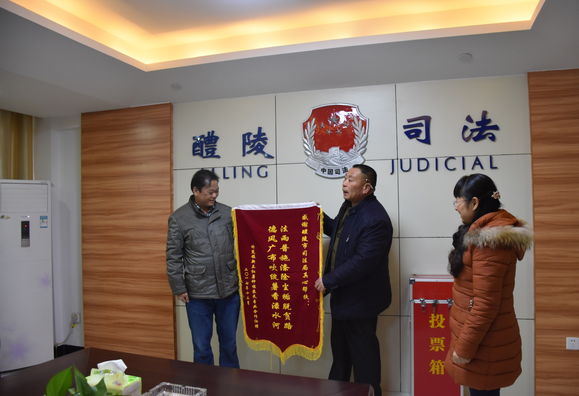 1月18日上午,新立红薯种植农民专业合作社负责人将一面绣着"法雨普施涤除尘垢脱贫路,德风广布吹绽薯香渌水河"的锦旗送到醴陵市司法局党组书记、局长谢新国手中,对司法局在开展企业帮扶活动中,对合作社无微不至的服务和帮助表示衷心的感谢!