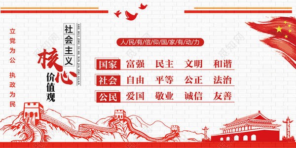 党的十八大提出,倡导富强、民主、文明、和谐,倡导自由、平等、公正、法治,倡导爱国、敬业、诚信、友善,积极培育和践行社会主义核心价值观。富强、民主、文明、和谐是国家层面的价值目标,自由、平等、公正、法治是社会层面的价值取向,爱国、敬业、诚信、友善是公民个人层面的价值准则,这24个字是社会主义核心价值观的基本内容。