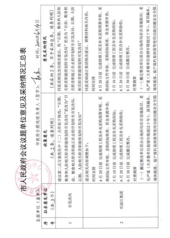 2. 市人民政府会议议题单位意见及采纳情况汇总表