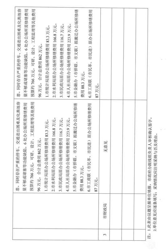 5. 市金融办(市侨联、市文联)拟搬迁办公场所修缮费用88.3万元。