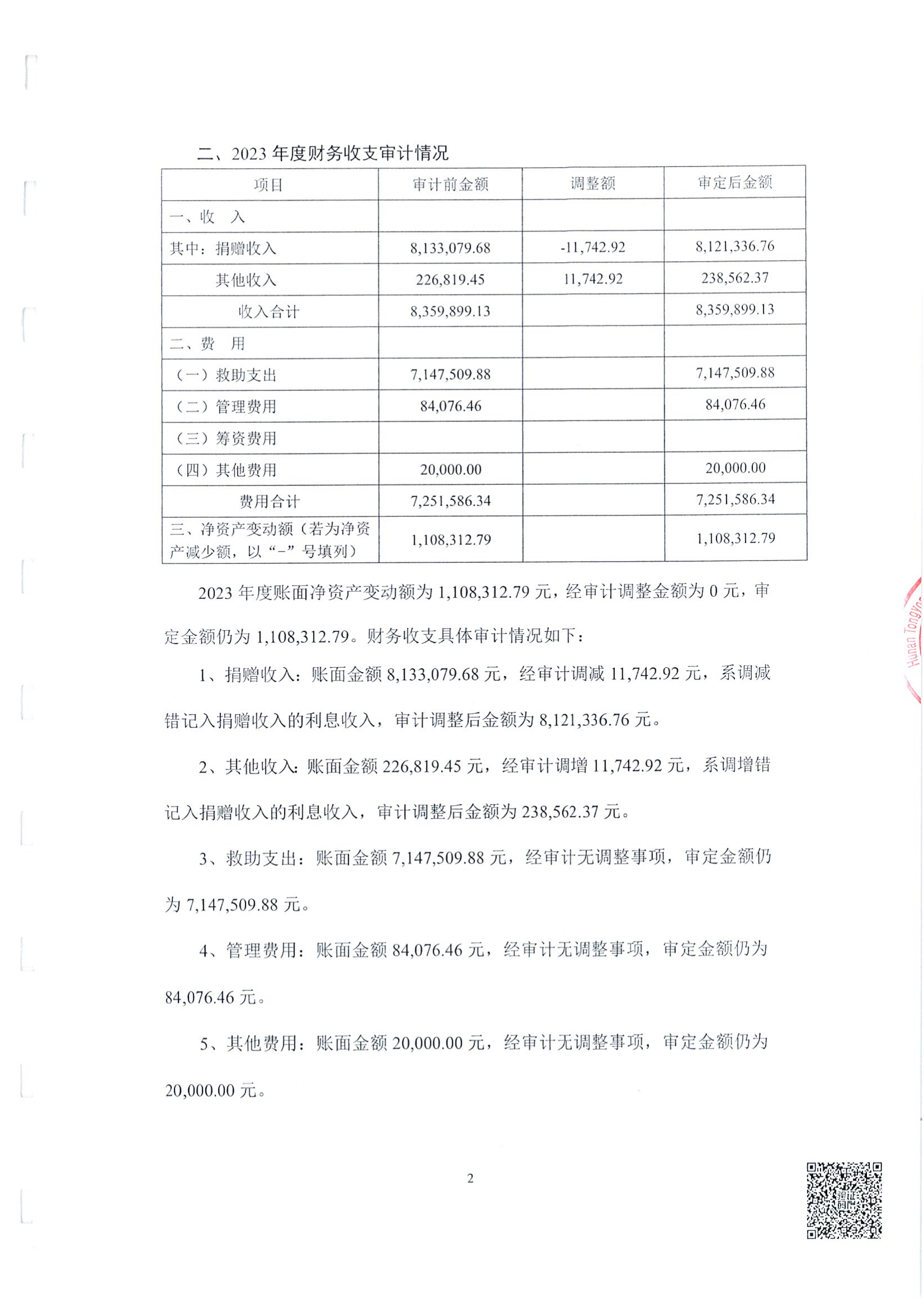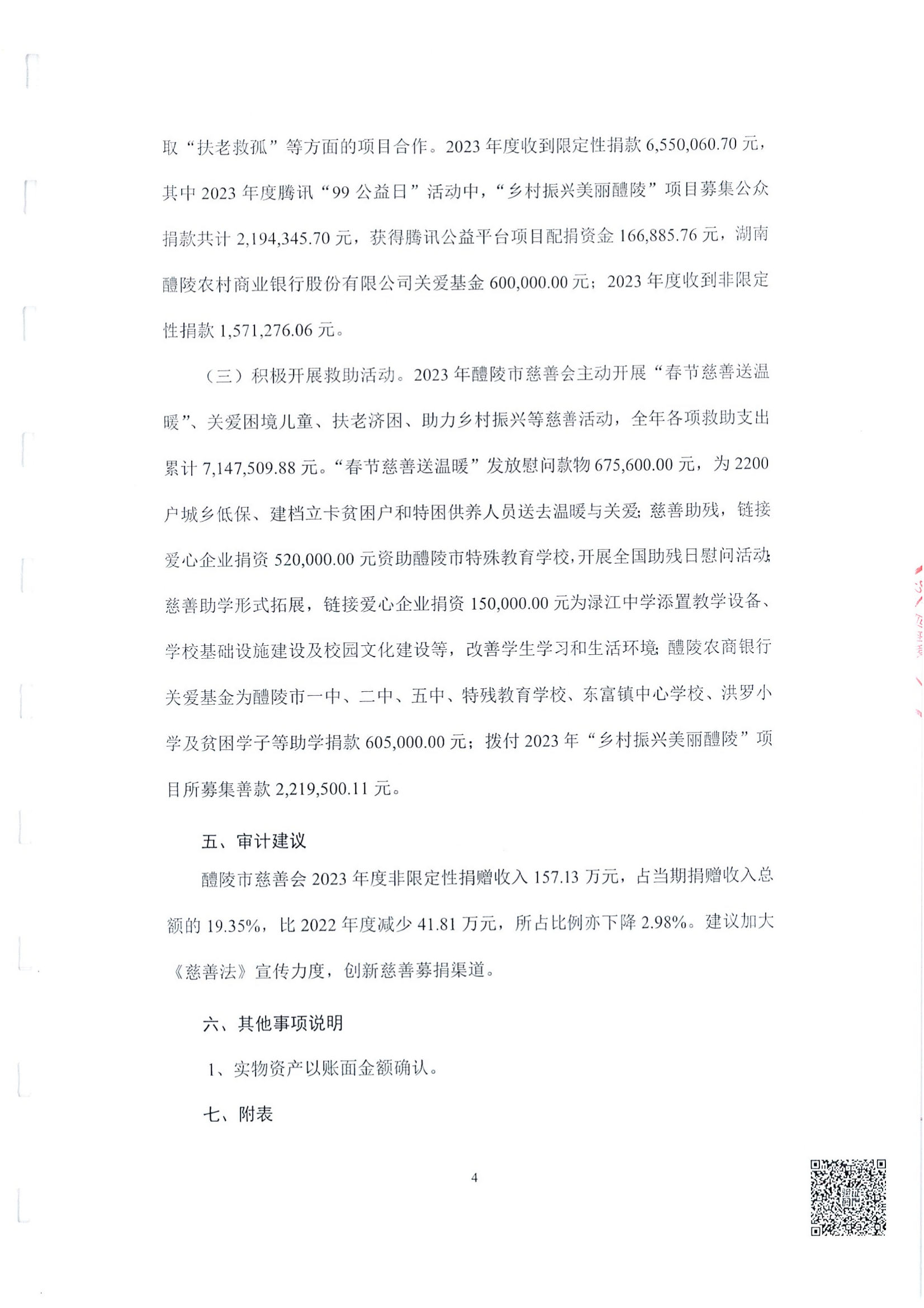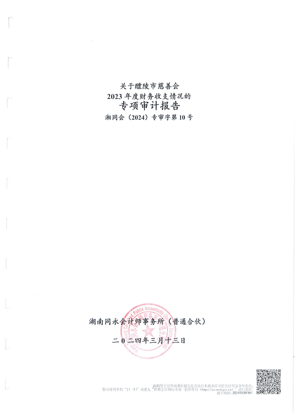 2024年3月,醴陵市慈善会委托湖南同永会计师事务所对市慈善会2023年度财务收支情况进行了审计,现将《关于醴陵市慈善会2023年度财务收支情况的专项审计报告》原文公示如下: