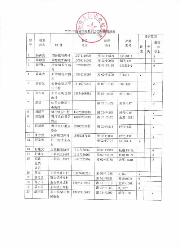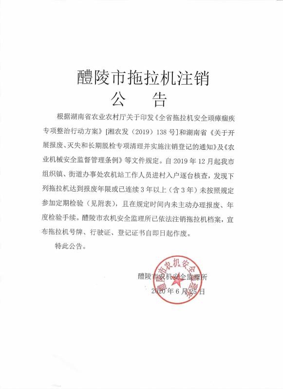 醴陵市拖拉机注销公告