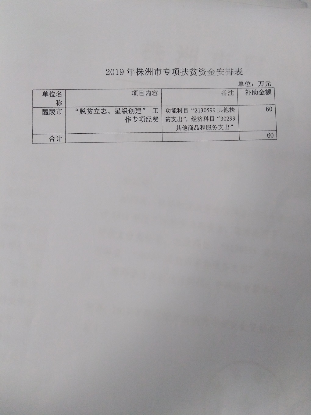 公示单位 :醴陵市财政局