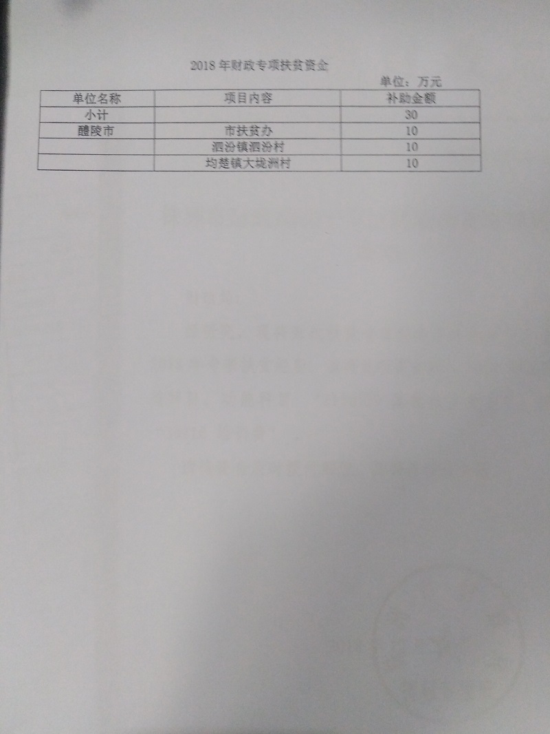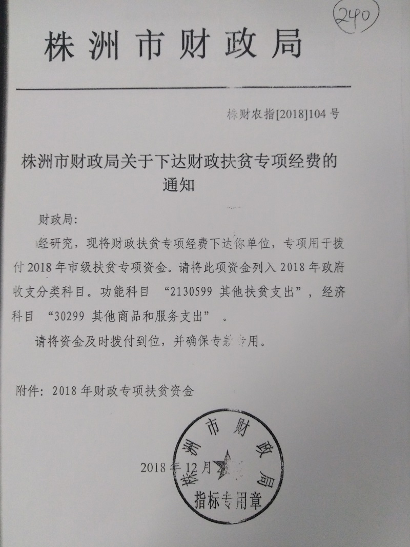 株洲市财政局关于下达财政扶贫专项经费的通知(株财农指【2018】104号)