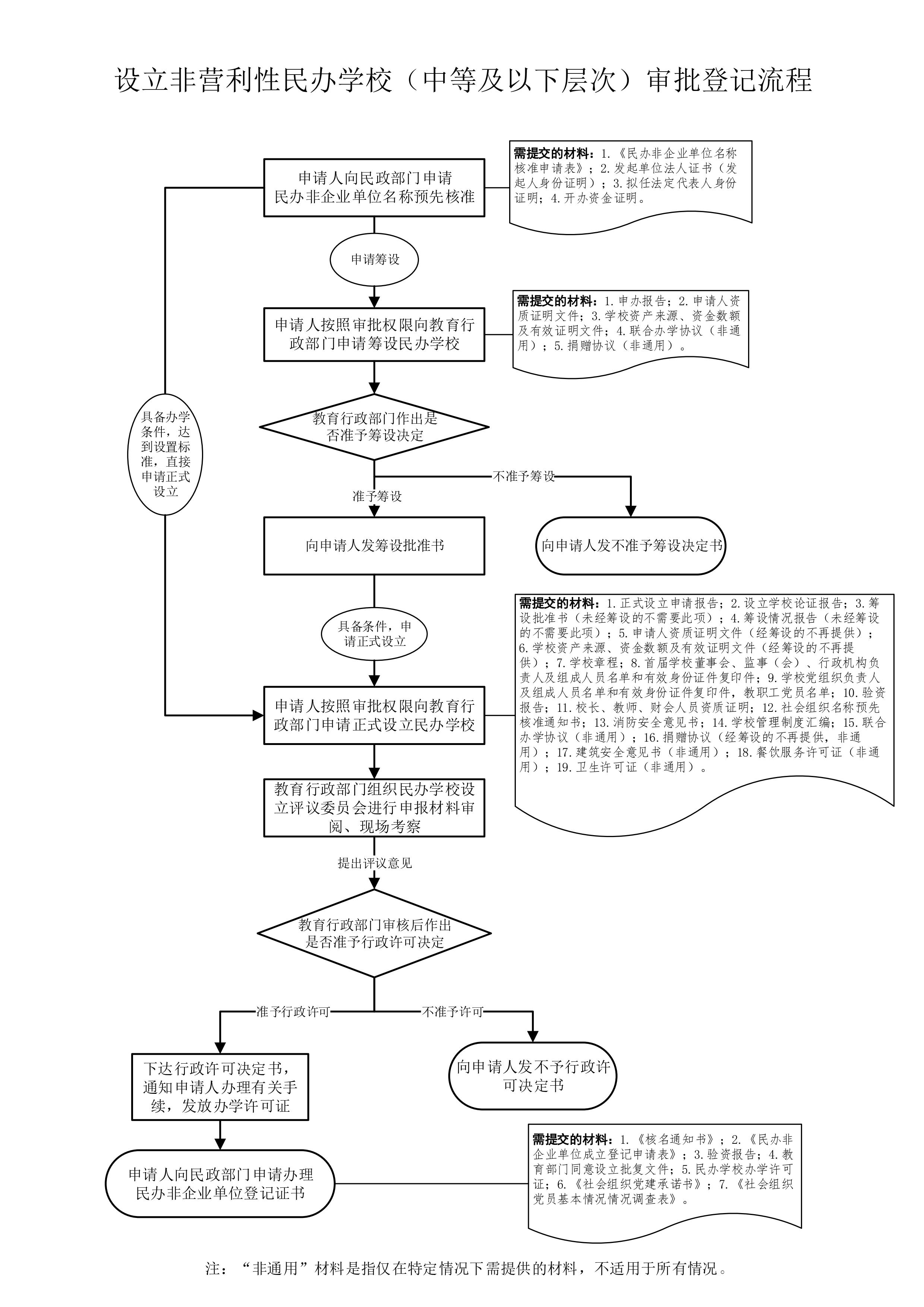 1.设立非营利性民办学校(中等及以下层次)审批登记流程