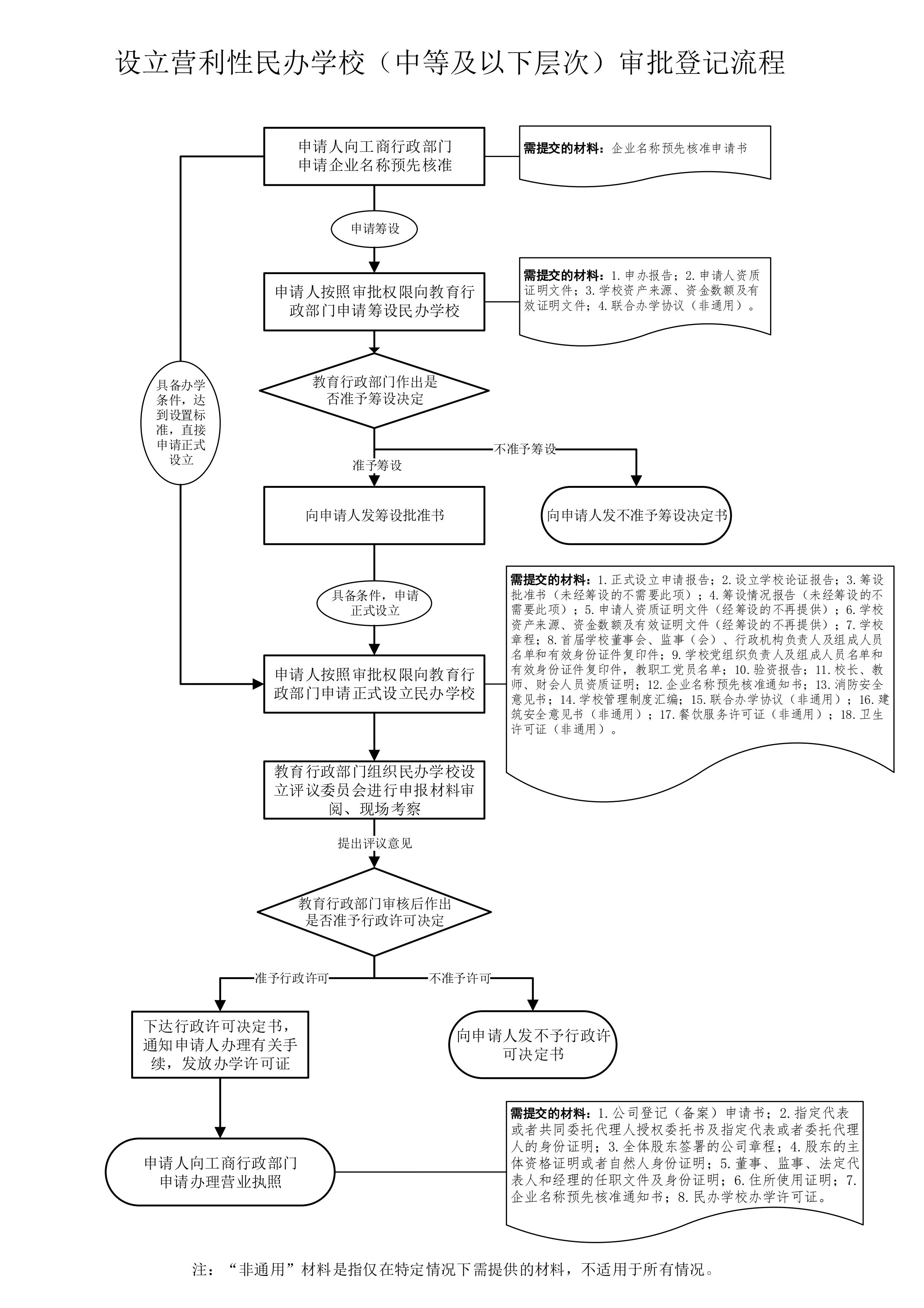2.设立营利性民办学校(中等及以下层次)审批登记流程