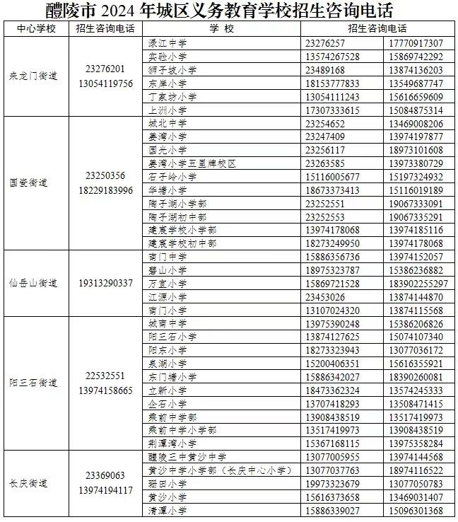 ● 招生咨询电话是热线电话,招生季常常占线,如需咨询,请您在工作时间耐心拨打,或者先查阅入学当年相关招生政策:《醴陵市2024年义务教育阶段学校招生实施方案》。