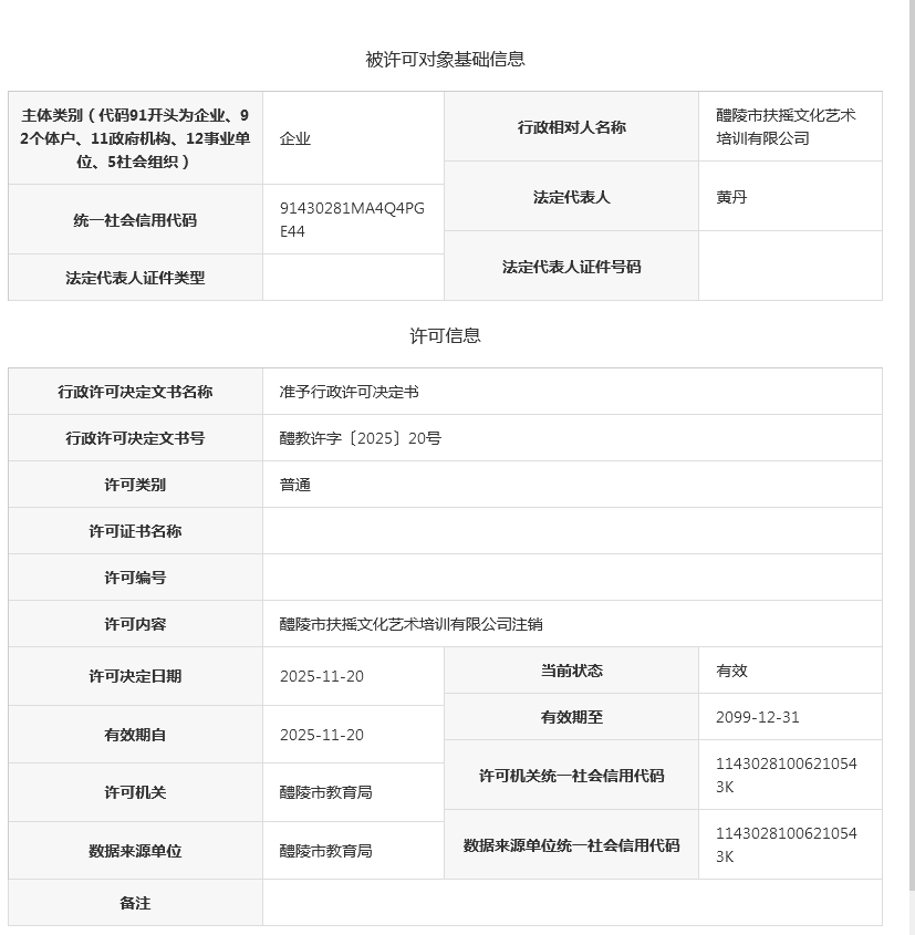 关于醴陵市扶摇文化艺术培训有限公司注销的公示
