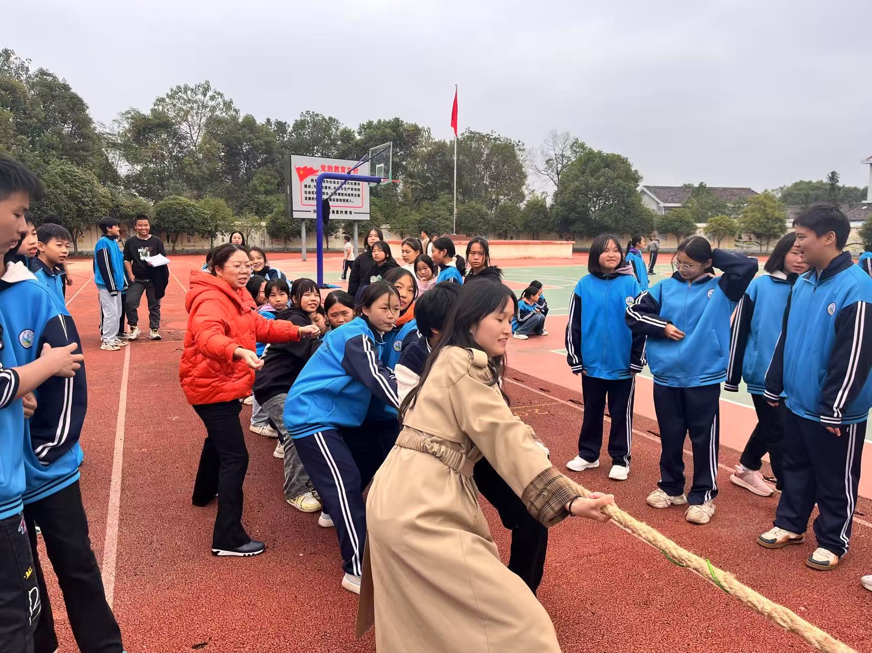 操场上,各班同学齐心协力,奋力将手中的麻绳往后拉,眼神中透露出坚定与团结,燃烧着对胜利的渴望,一条朴素的麻绳凝聚着珍贵的团结一致的心,每一滴汗水见证了团队的拼搏与坚持。