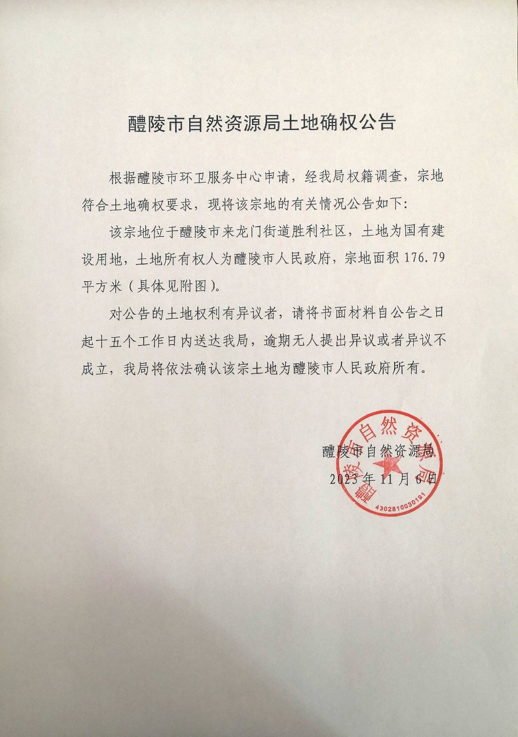 醴陵市自然资源局土地确权公告(醴陵市人民政府)