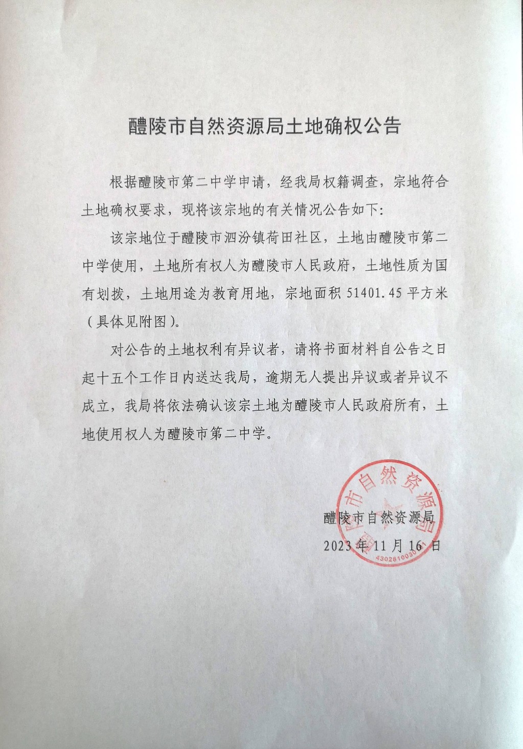 醴陵市自然资源局土地确权公告(醴陵市第二中学)