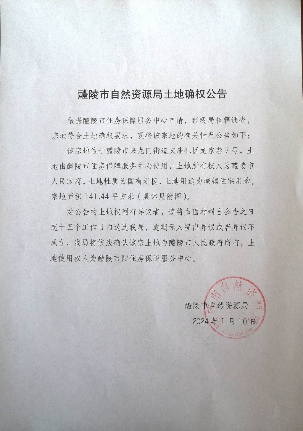醴陵市自然资源局土地确权公告(醴陵市住房保障服务中心)