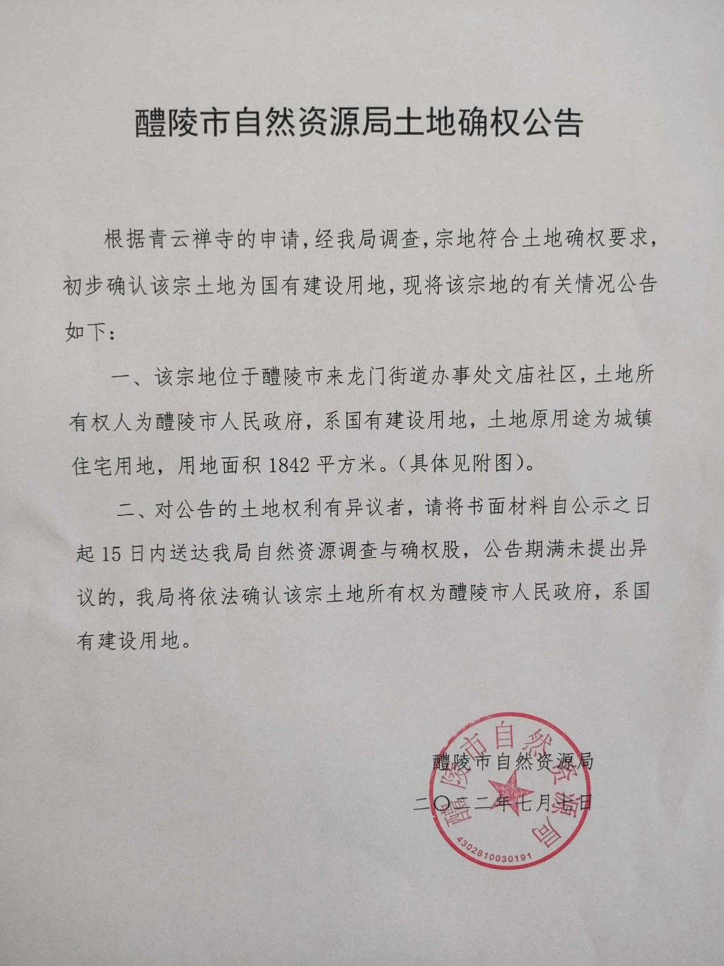 醴陵市自然资源局土地确权公告 (青云禅寺)