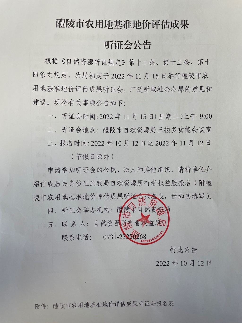 附件:醴陵市农用地基准地价评估成果听证会报名表