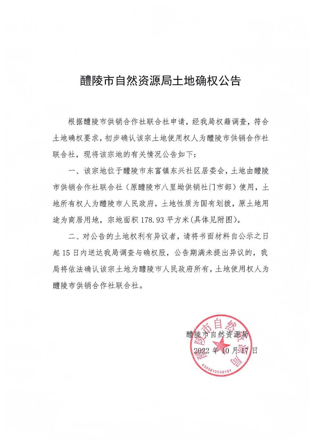 醴陵市自然资源局土地确权公告(醴陵市供销合作社联合社)