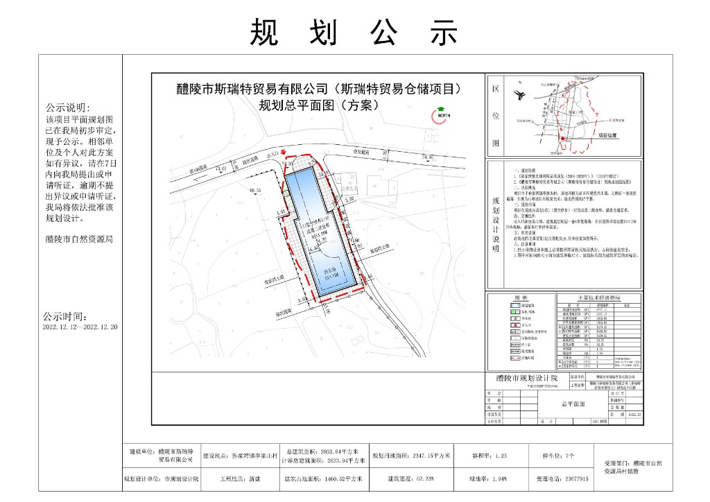 醴陵市斯瑞特贸易有限公司(斯瑞特贸易仓储项目)规划总平面图(方案)公示