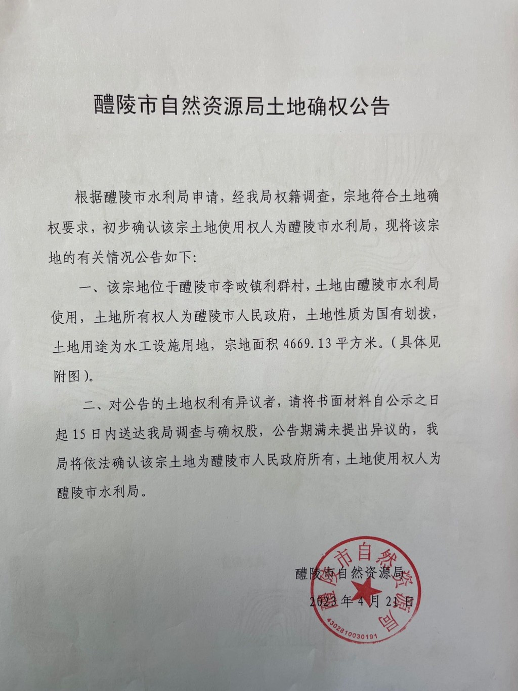 醴陵市自然资源局土地确权公告(醴陵市水利局)