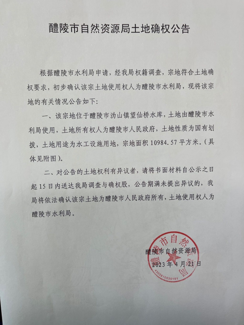 醴陵市自然资源局土地确权公告(醴陵市水利局)