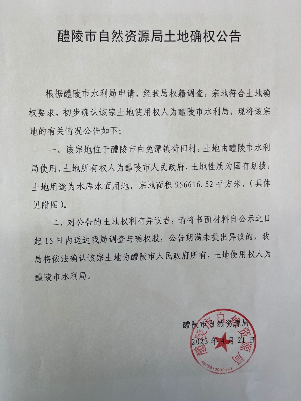 醴陵市自然资源局土地确权公告(醴陵市水利局)