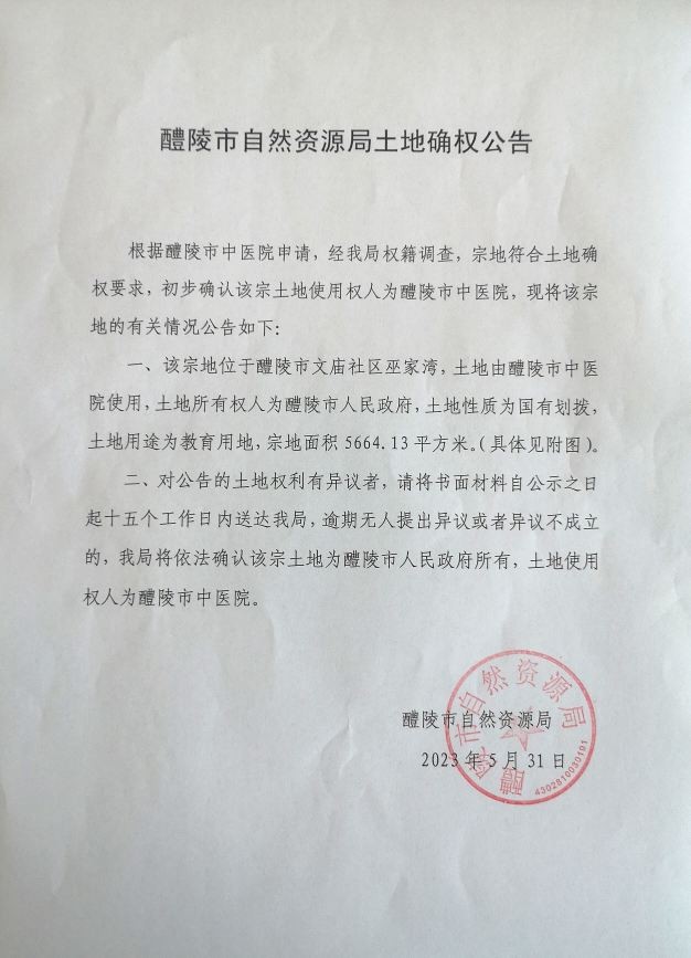 醴陵市自然资源局土地确权公告(醴陵市中医院)