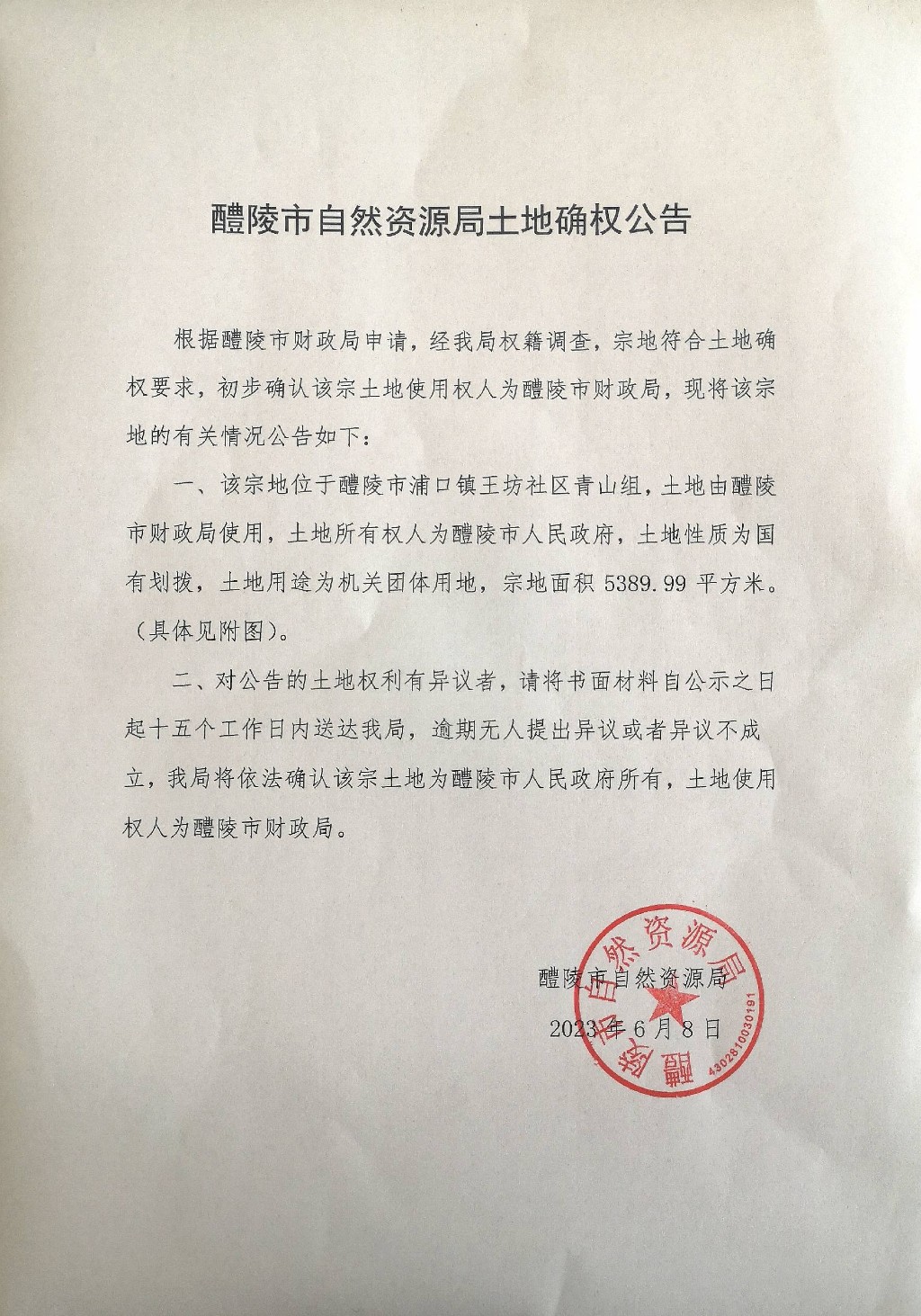 醴陵市自然资源局土地确权公告(醴陵市财政局)