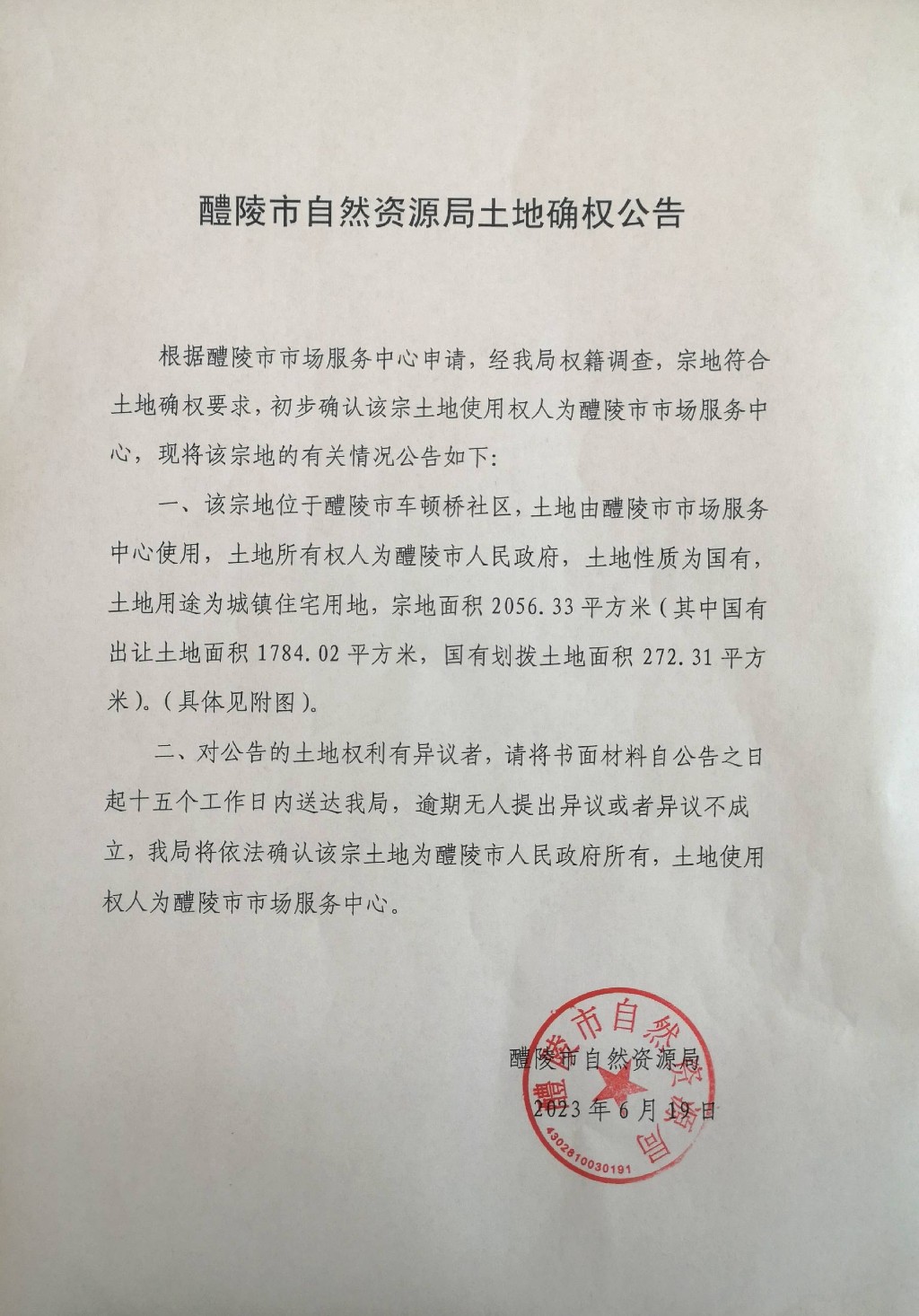 醴陵市自然资源局土地确权公告(醴陵市市场服务中心)