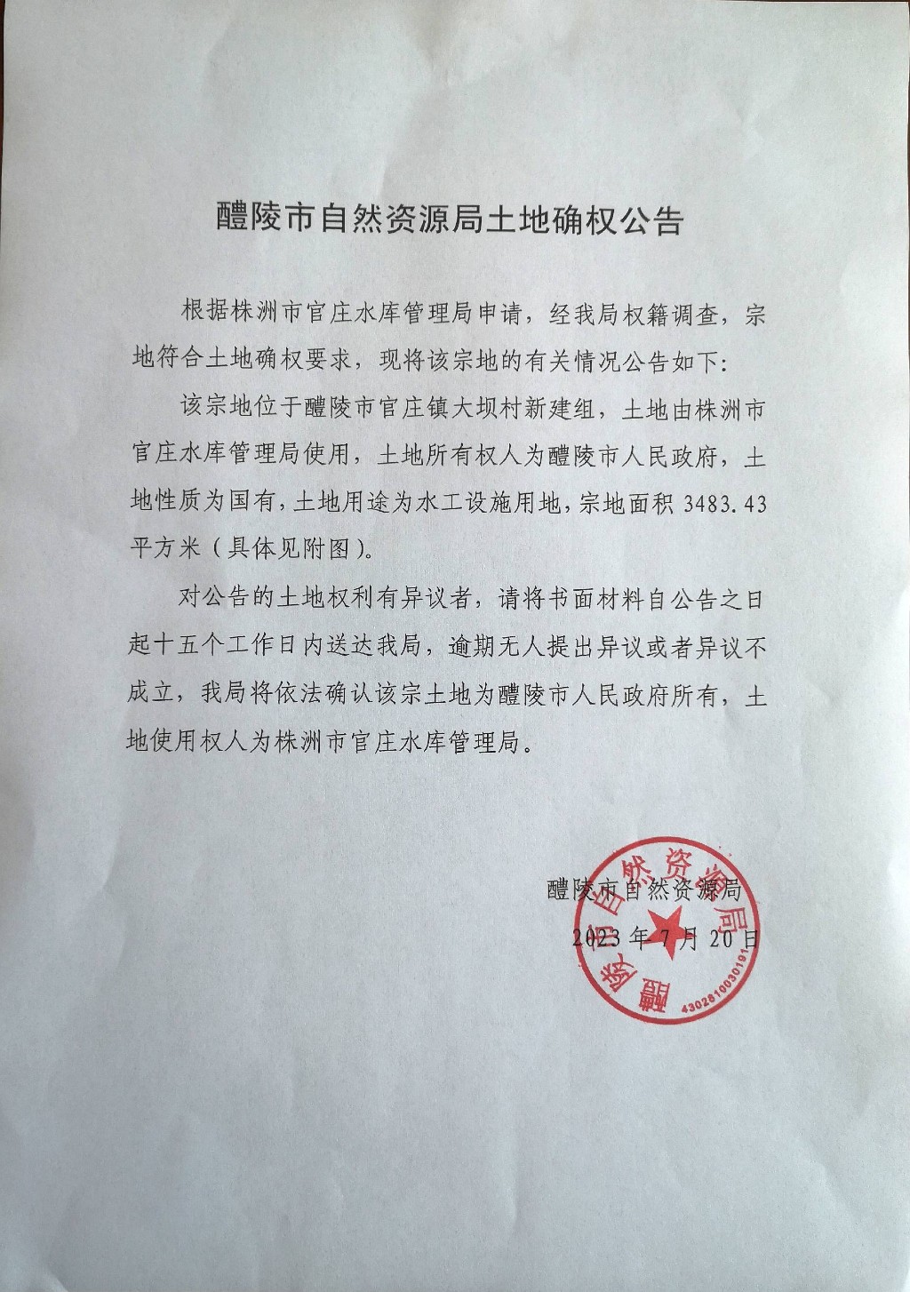 醴陵市自然资源局土地确权公告(株洲市官庄水库管理局)