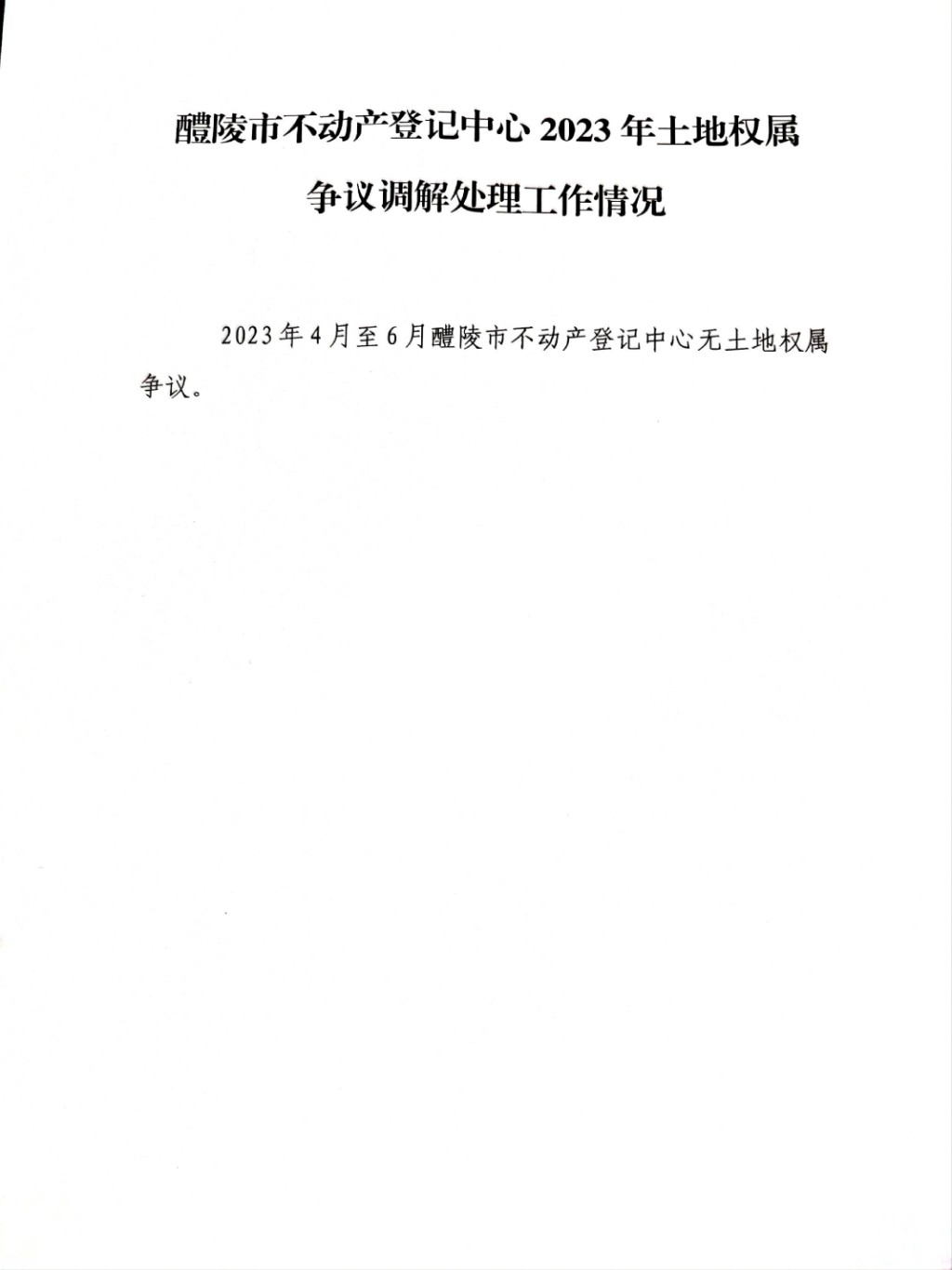 醴陵市不动产登记中心2023年土地权属争议调解处理工作情况