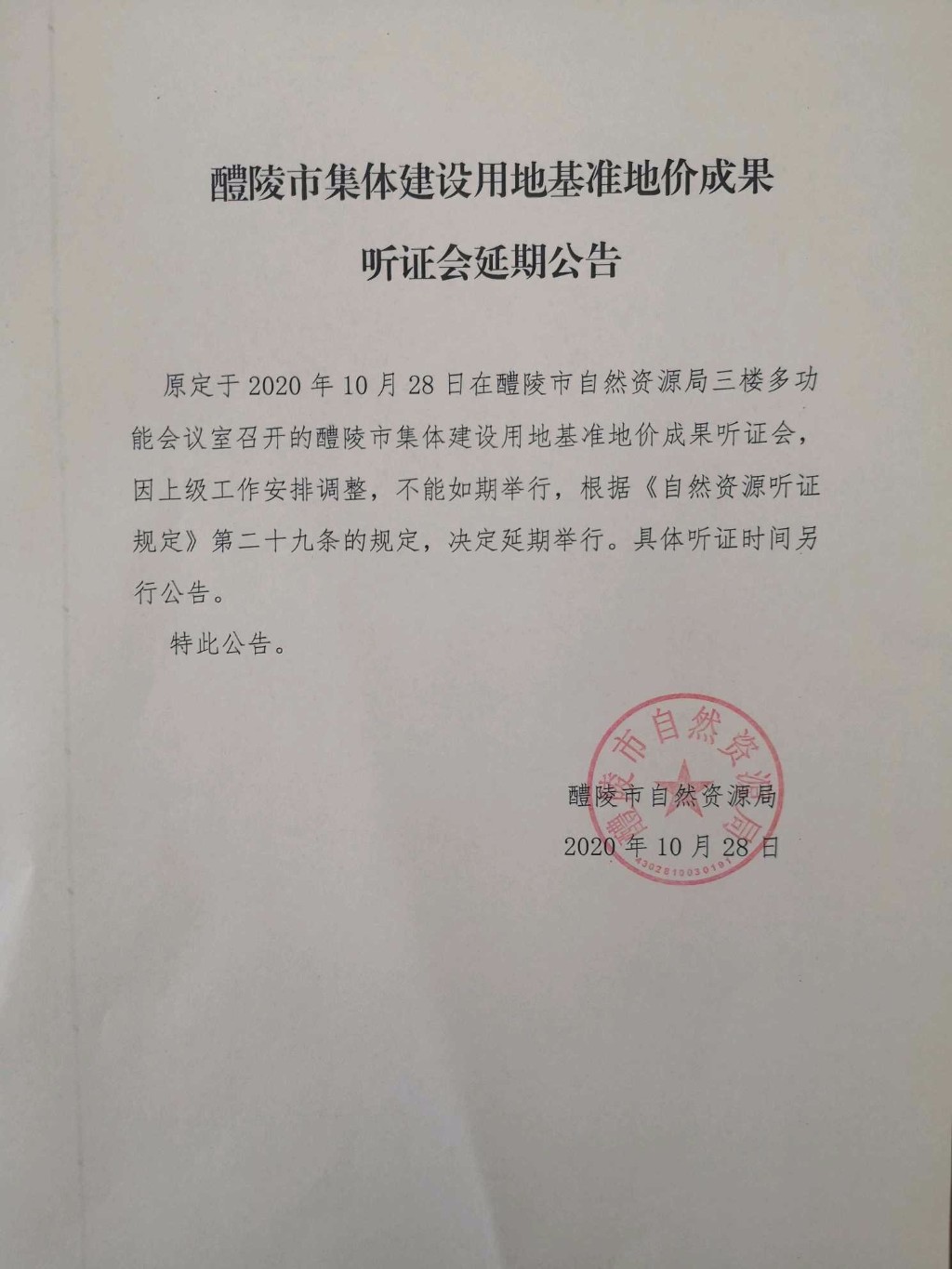 醴陵市集体建设用地基准地价成果听证会延期公告