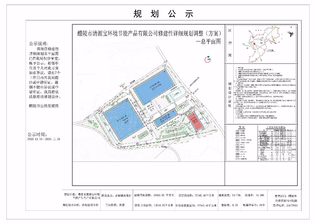 醴陵市清源宝环境节能产品有限公司修建性详细规划调整(方案)规划公示