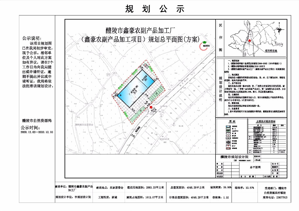 醴陵市鑫豪农副产品加工厂(鑫豪农副产品加工项目)规划总平面图(方案)公示