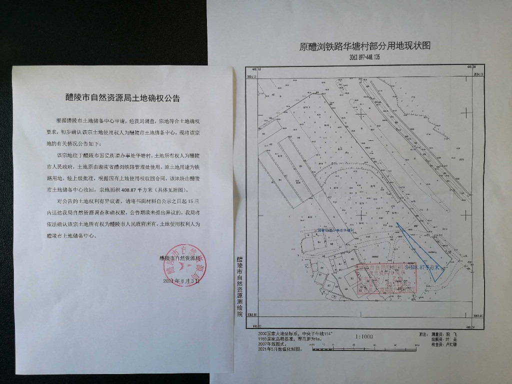 醴陵市自然资源局土地确权公告(醴浏铁路华塘村部分用地)