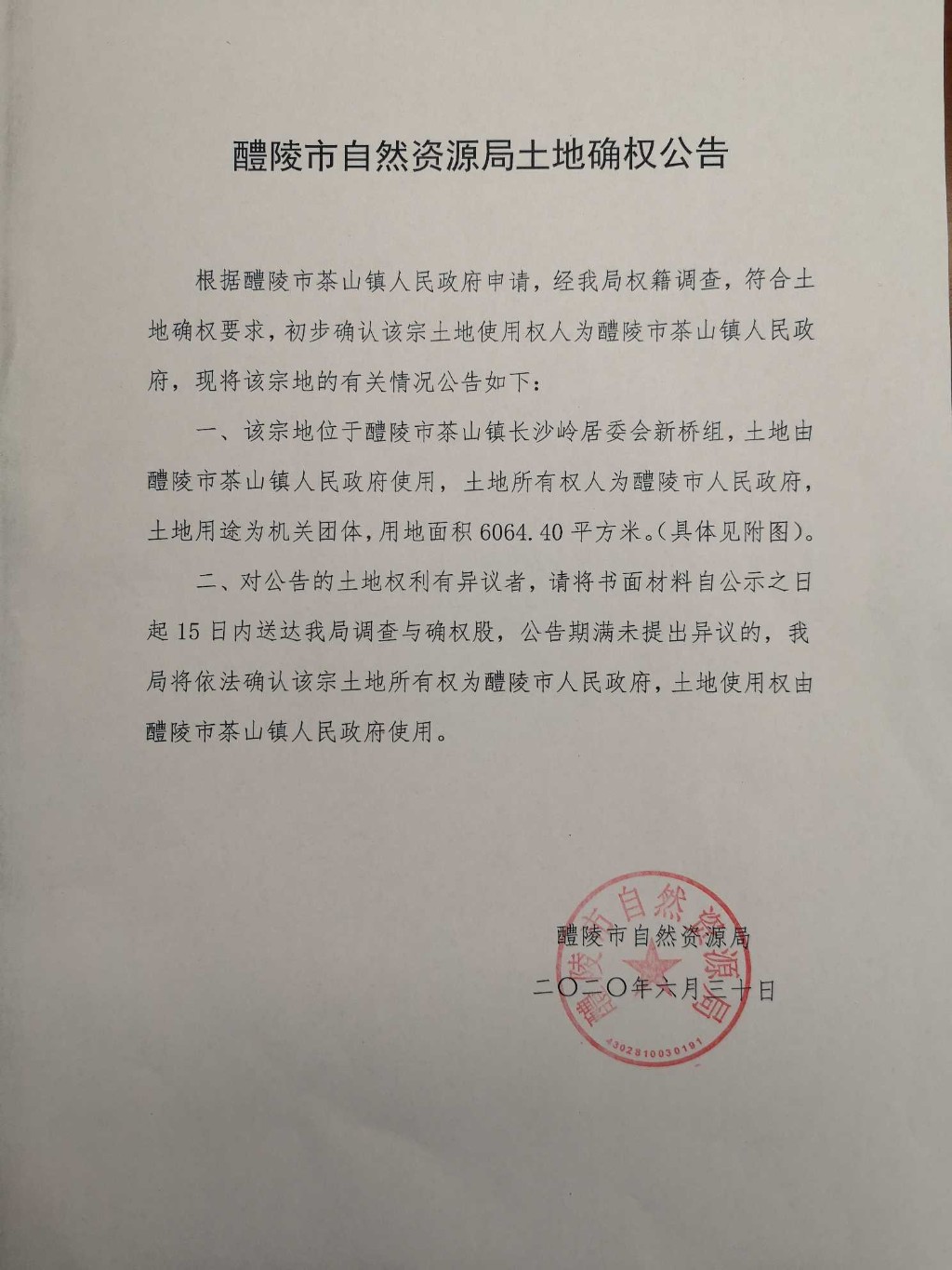 醴陵市自然资源局土地确权公告(醴陵市茶山镇人民政府)