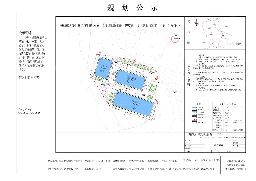 株洲凯辉服饰有限公司(凯辉服饰生产项目)规划总平面图规划公示