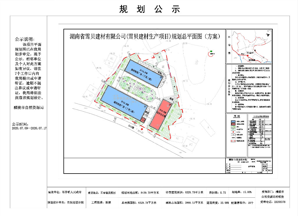 湖南省雪贝建材有限公司(雪贝建材生产项目)规划总平面图规划公示