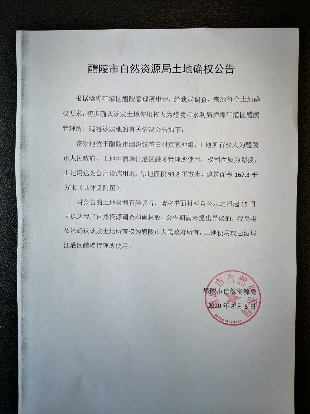 醴陵市自然资源局土地确权公告(酒埠江灌区醴陵管理所)