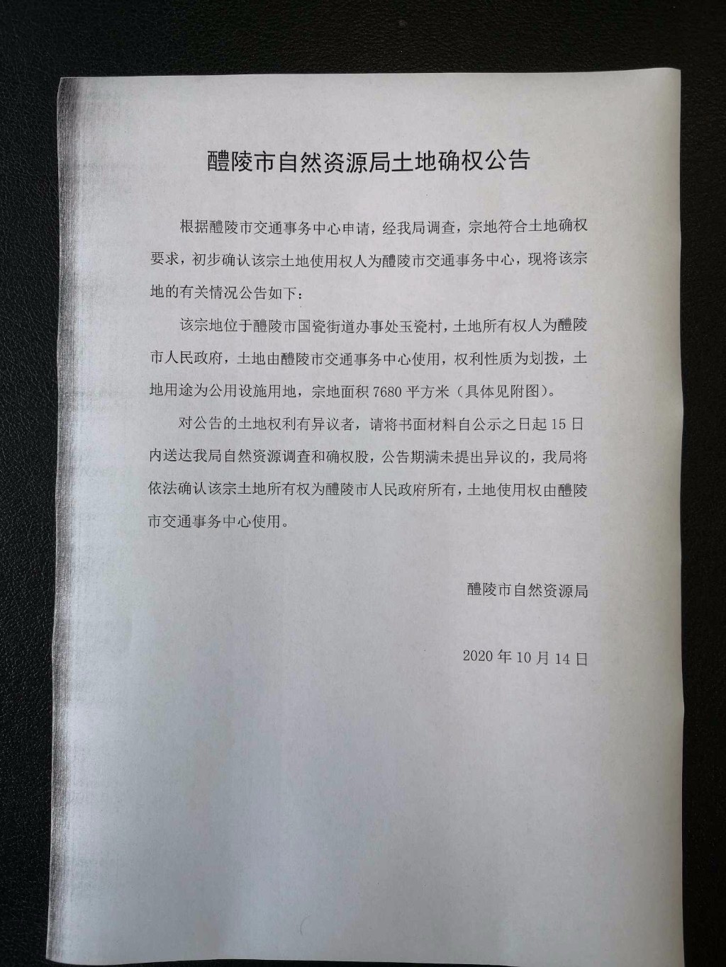 醴陵市自然资源局土地确权公告 (玉瓷村)