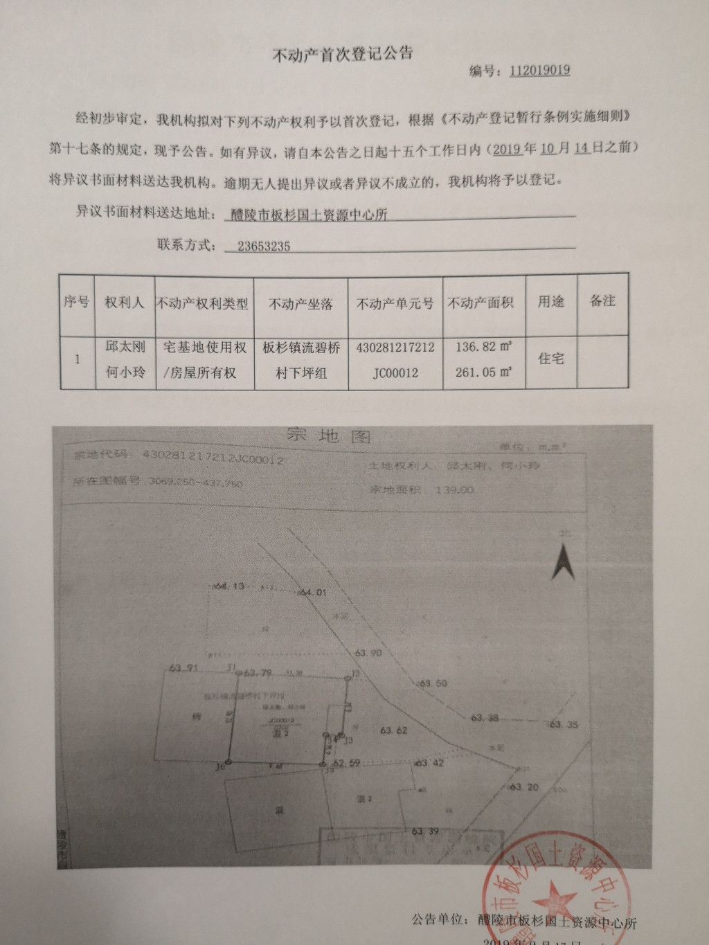 不动产首次登记公告(邱太刚 何小玲)