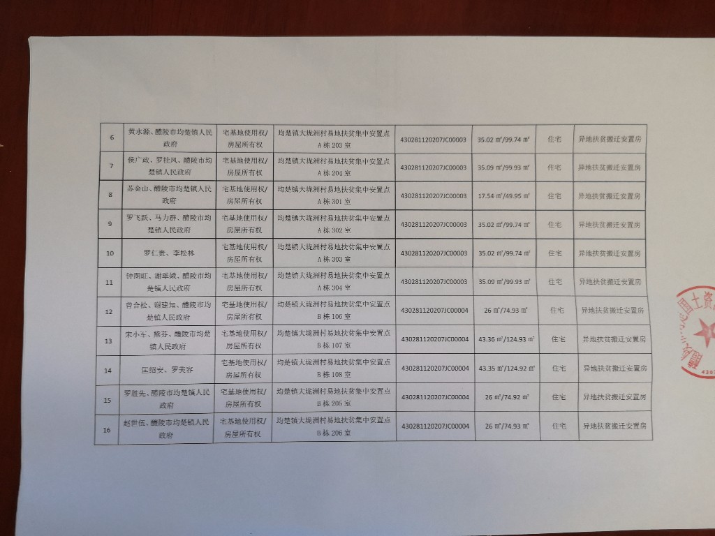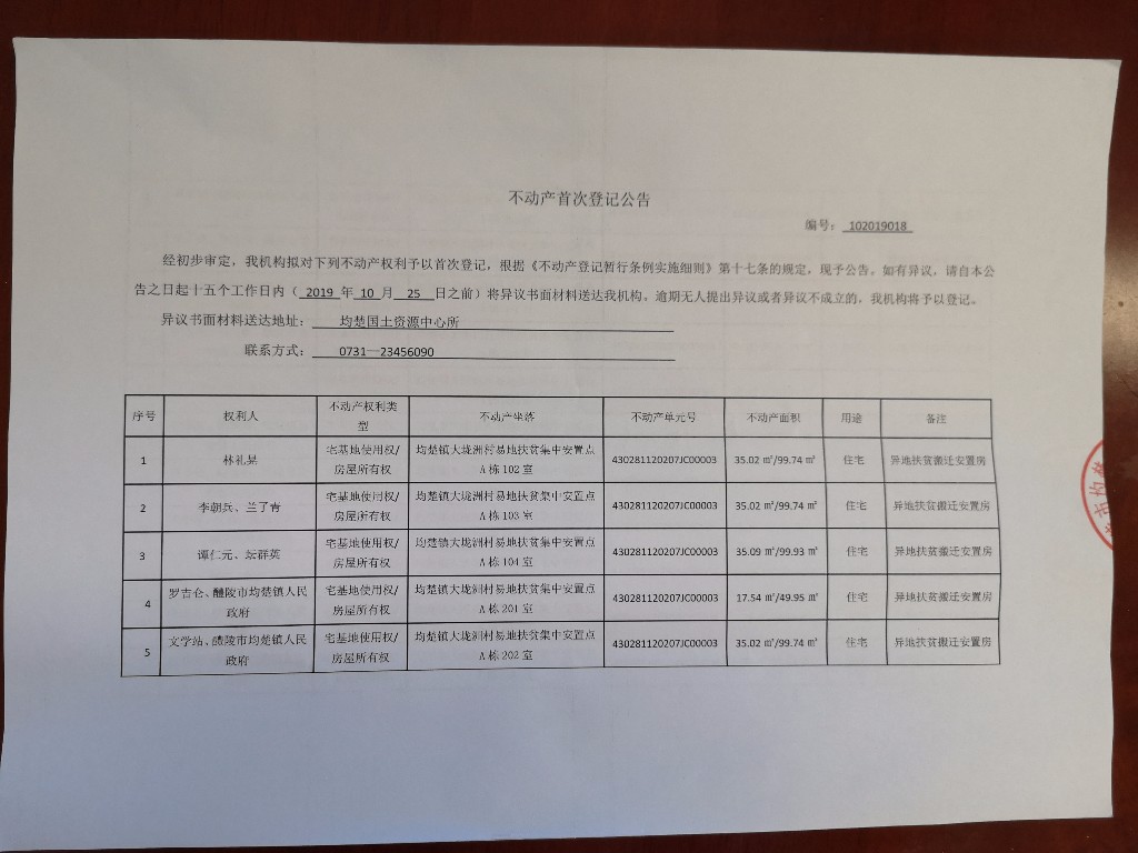 不动产首次登记公告(均楚镇大垅洲村易地扶贫集中安置点)