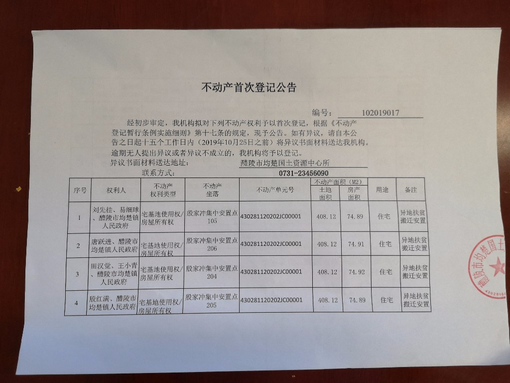 不动产首次登记公告(殷家冲集中安置点)