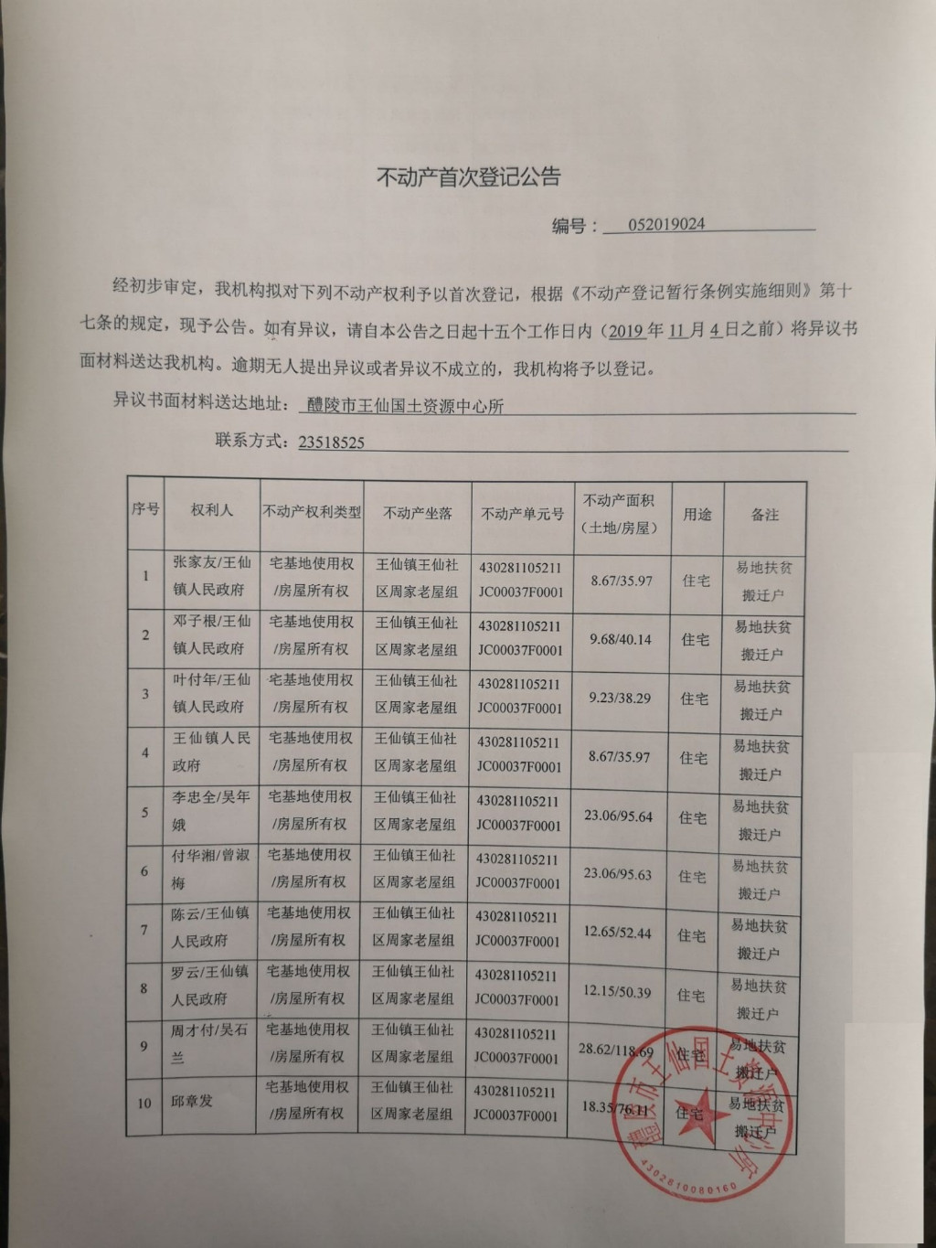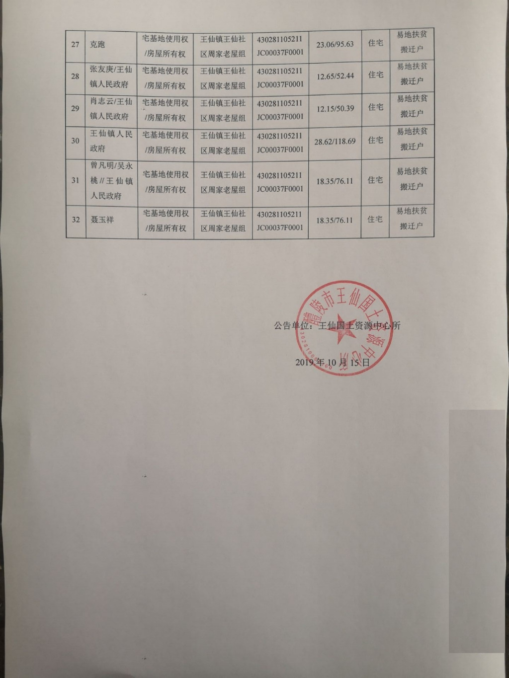 不动产首次登记公告(王仙镇王仙社区周家老屋组)
