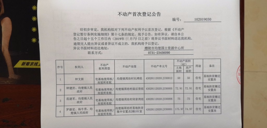 不动产首次登记公告(均楚镇周坊村)