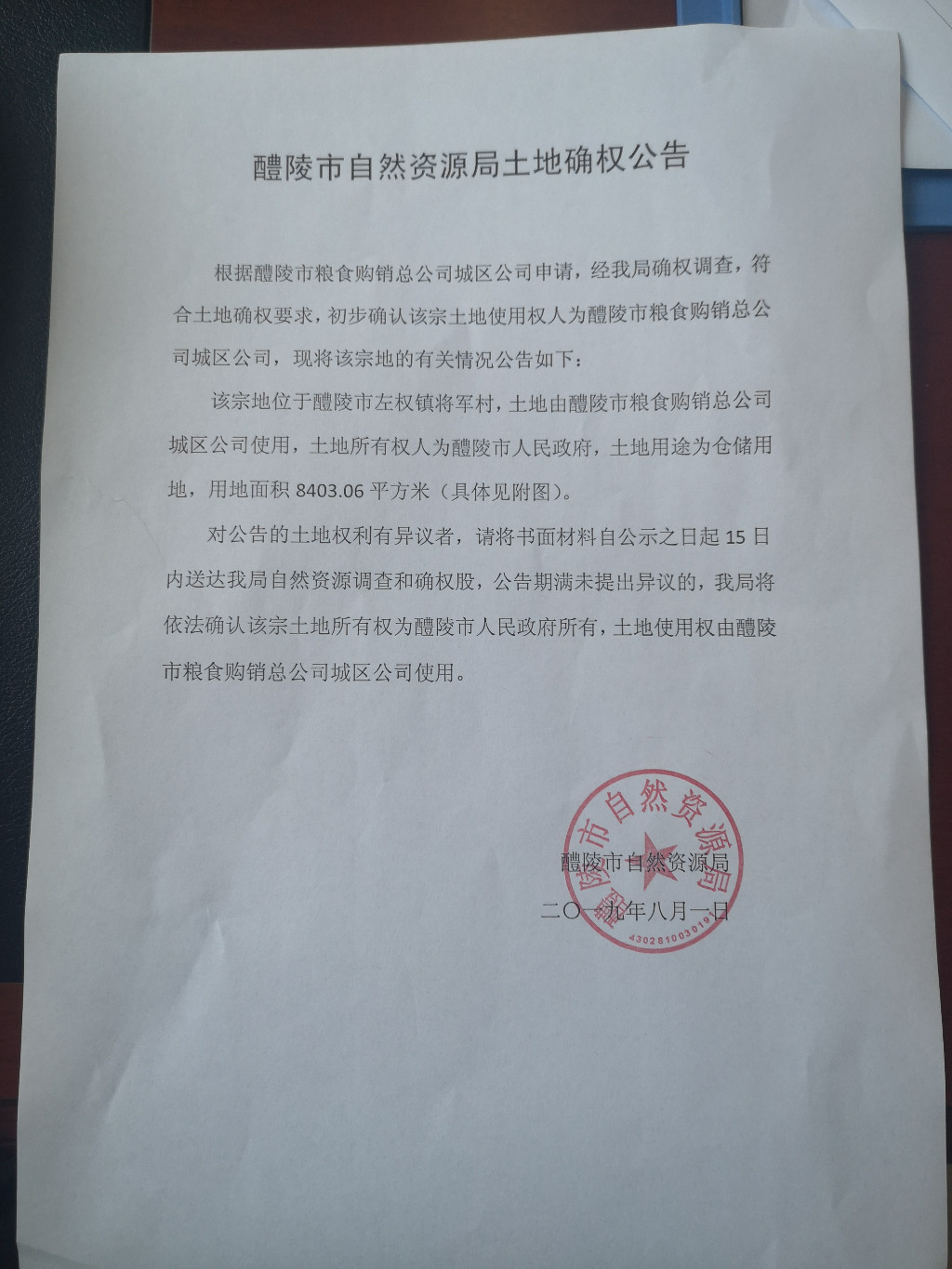 醴陵市自然资源局土地确权公告(醴陵市粮食购销总公司城区公司)