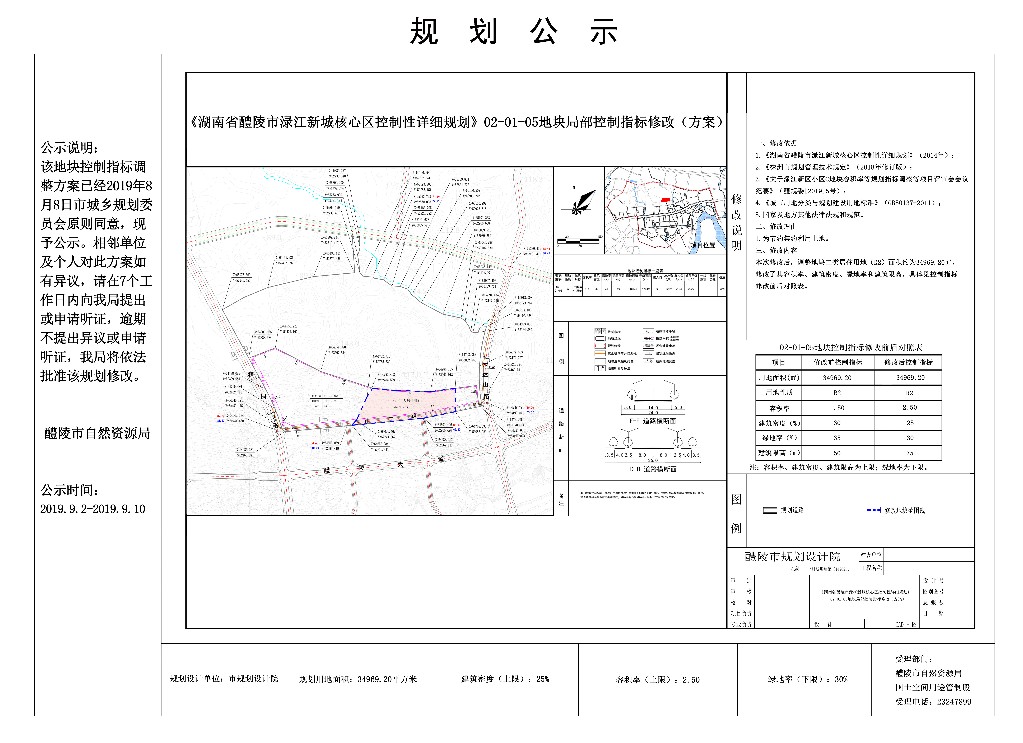 《湖南省醴陵市渌江新城核心区控制性详细规划》02-01-05地块局部控制指标修改(方案)公示图