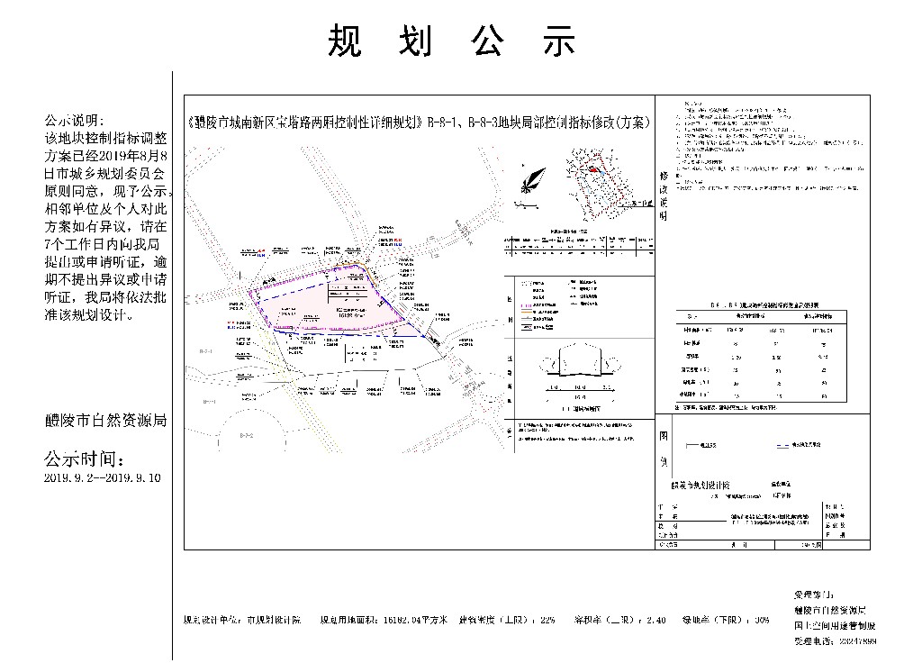 《醴陵市城南新区宝塔路两厢控制性详细规划》B-8-1、B-8-3地块局部控制指标修改(方案)公示图