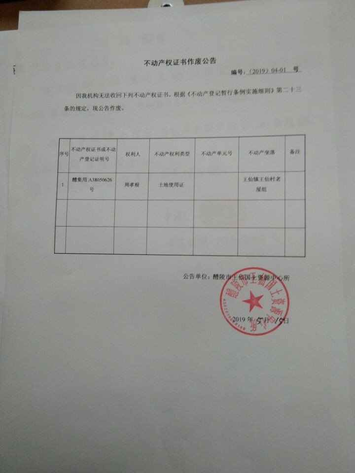 不动产权证书作废公告(周孝根)