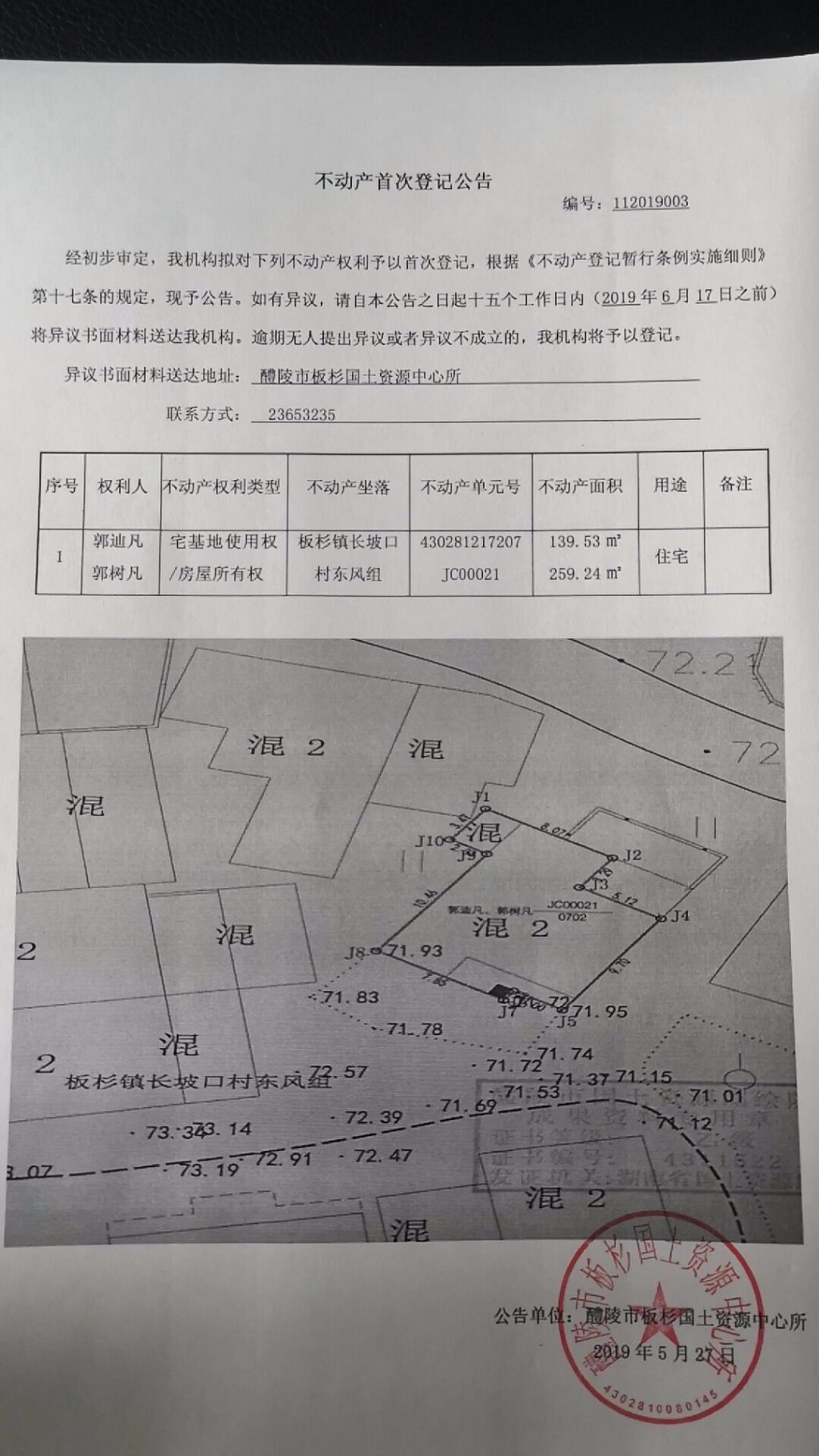 不动产首次登记公告(郭迪凡、郭树凡)