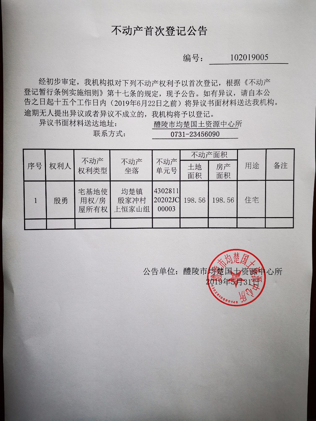 不动产首次登记公告(殷勇)